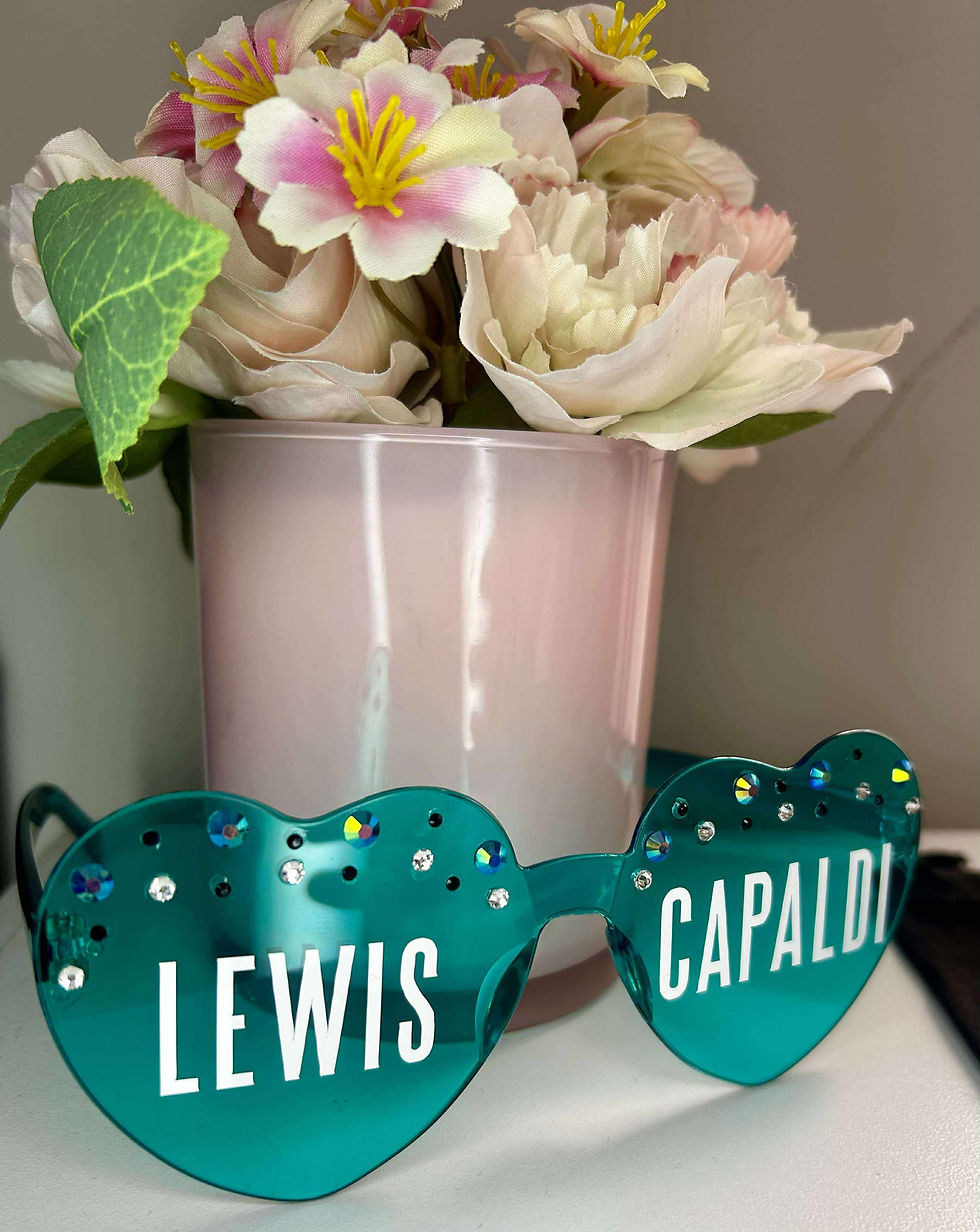 Lewis Capaldi Concert Heart Glasses with Rhinestones